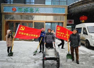 黨旗飄飄,安徽交建黨委除雪鏟冰獻(xiàn)真情