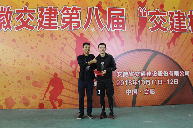 在閉幕式上,安徽交建領(lǐng)導(dǎo)吳學(xué)懿、陳明洋、吳小輝、柳欣分別為冠軍、亞軍、季軍和MVP頒發(fā)獎杯并表示祝賀。最后,吳總宣布本屆籃球比賽圓滿落幕,期待明年再會!